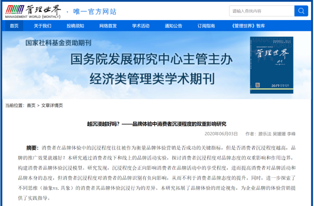 《管理世界》官网刊载截图